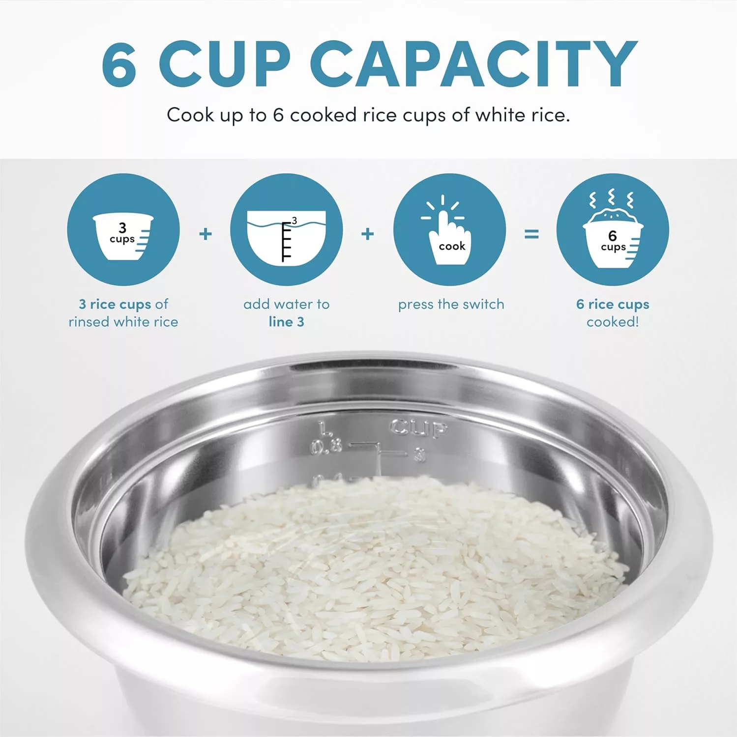 - Perfectly prepares 2 to 6 cups of any variety of cooked rice
