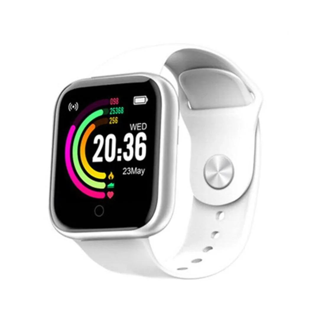 Bluetooth Smart Watch Bracelet Wristbands Blood Pressure Heart Rate Monitor Pedometer Cardio Waterproof Sport Watches for IOS Android & More. -Type: Smartwatch Material: TPU -Screen size: 1.3″ -Screen resolution: 240 * 240 -Operation: one-touch Interface: USB 2.0 -Battery capacity: 100 mAh -Standby time: about 15 days -Working hours: 1-2 days -Charging method: USB charging port -Bluetooth version: V4.0 -Applicable platforms: Android platform, iOS platform -Compatibility with the phone version: IOS9.0 and above, Android 5.0 and above Package list: 1 x smartwatch 1 x user manual Product Description: DESCRIPTION: 1. This item does not need a charging cable, just put the USB interface into the Charging Head to charge. 2. Power on ( long-press 3-5 sec this button to power on ) 3. Scan the QR code to download the APP, please refer to the manual for specific operations. Highlight: -IP67 Waterproof: It supports hand washing, rain, meets daily needs (note: cannot wear for swimming, hot water bath & sauna). Health monitoring: Blood pressure monitoring, heart rate monitoring, sleep monitoring, sedentary reminder. Standard sports function: Step, calorie, distance calculation -Display: 2 kinds of UI interface style (main interface long press switch), time display, date display. Multiple sports modes. Call reminder and information push: connect to Fitpro APP, to display calls, text messages & SNS (Twitter, Line, WhatsApp, Facebook, Line, KaKaoTalk, WeChat, QQ) and other notifications; never miss important information. Other functions: Alarm clock, raise your hand to brighten the screen, remote camera, find the bracelet.