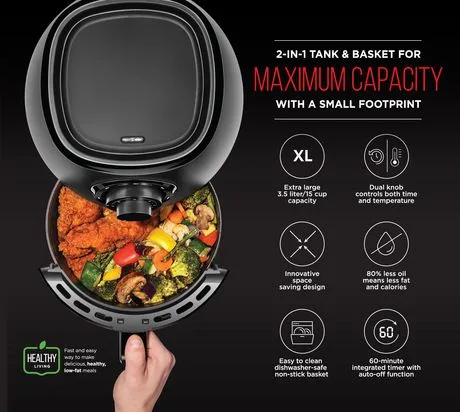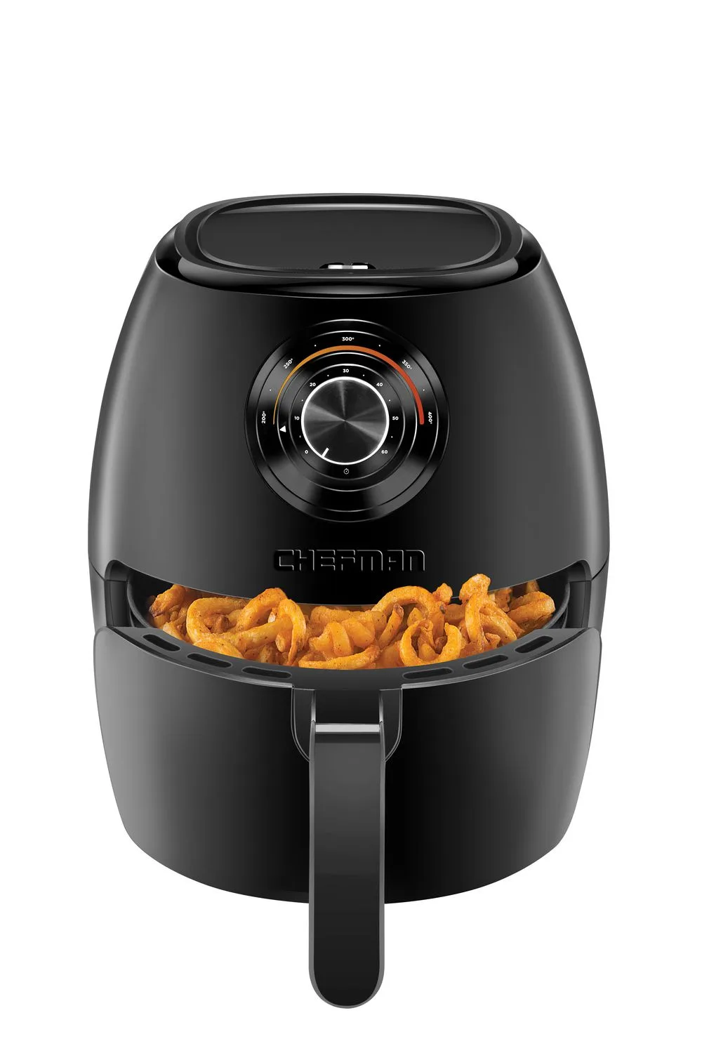 Achieve the deep-fried flavor you love, without all the oil and added calories. The Chefman TurboFry™ Air Fryer allows you to bake, fry and roast like a pro. This airfryer requires little to no oil, so there’s less of that fried oil smell lingering in the house and less fat that you’re consuming. It’s large 3.5-liter capacity and flat basket gives you the ability to cook enough for a hungry crowd all at once. Skip the microwave! Reheat soggy leftovers in the air fryer to return them to their original texture. Make better-for-you fries that are just as crispy and tasty, roast chicken thighs, or heat up leftovers for a quick and easy meal. The temperature control with 60-minute timer automatically shuts off once food is done, so you never have to worry about burning or drying out your food. Its space saving basket is removable and dishwasher safe for easy clean-up, so you’ll have more time to dream up your next air-fried meal!