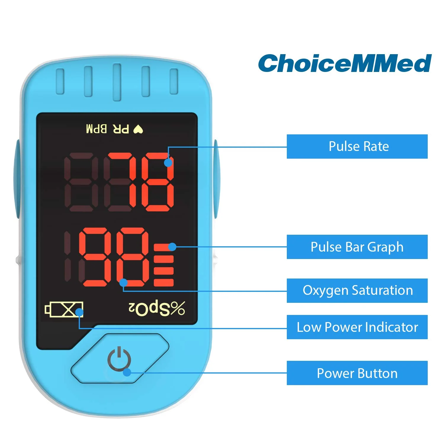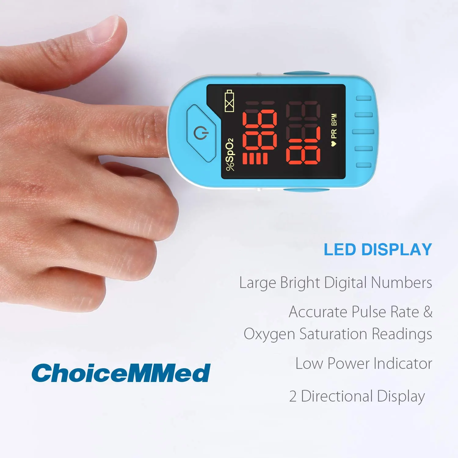 - ACCURATE AND RELIABLE: ChoiceMMed oxygen meter finger pulse oximeter accurately determine your SpO2 in 10 seconds and can read and display up to 100% on a larger LED display