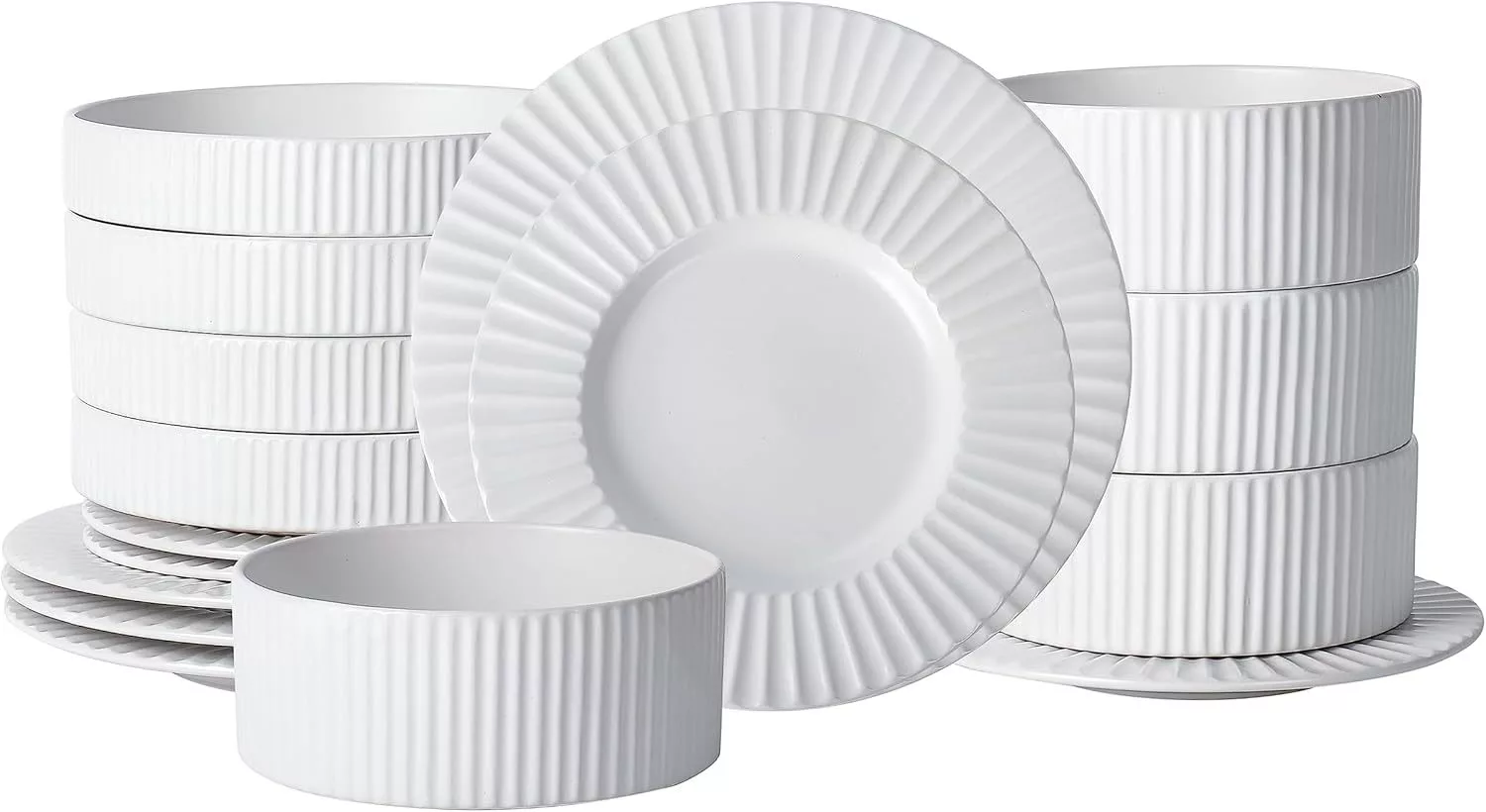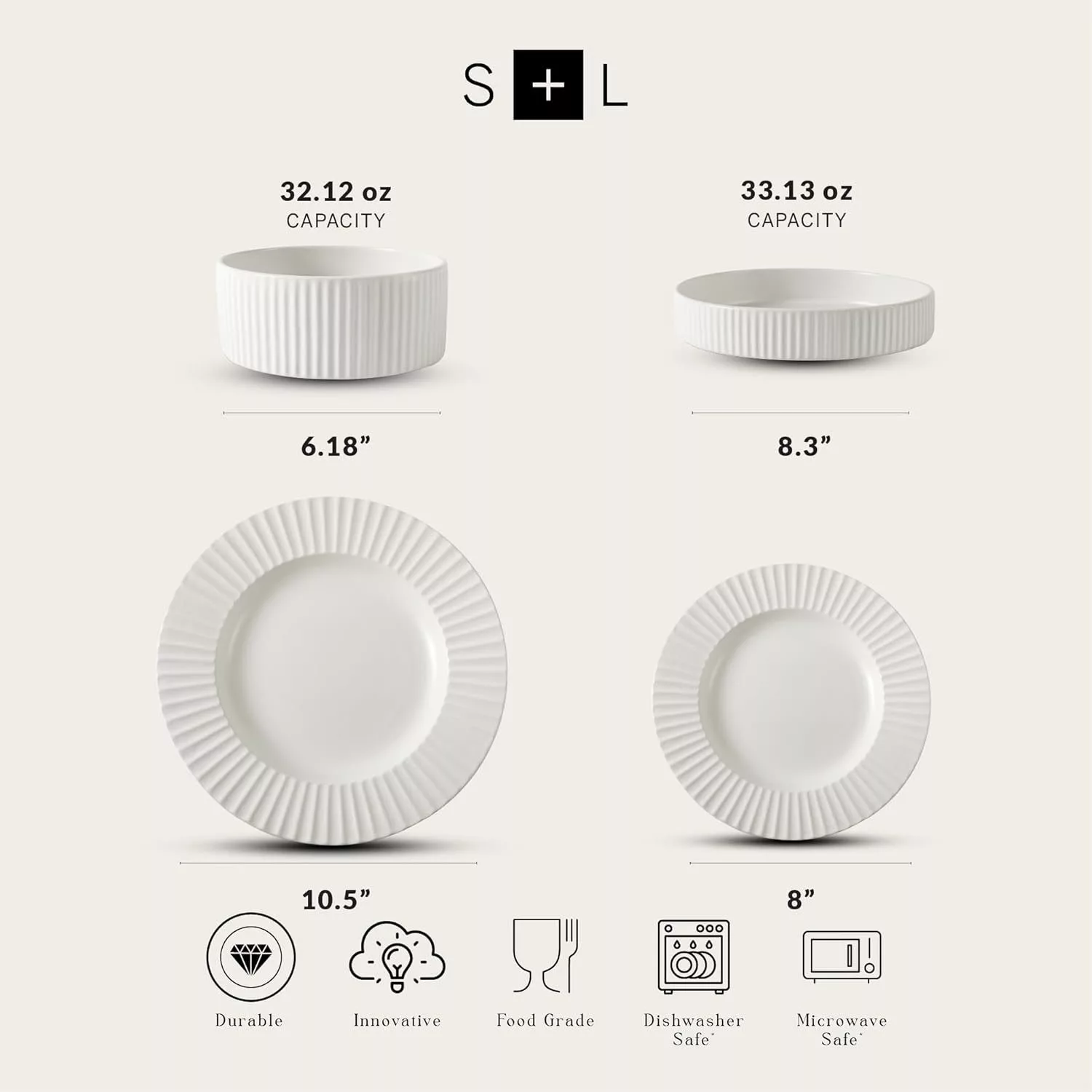 • 16-Piece Service for Four: The Lusso set includes four 10.5in. dinner plates, four 8in. salad plates, four 32.12 fl.oz soup bowls with a 6.18in. diameter, and four 33.13fl.oz pasta bowls with an 8.3in. diameter. This comprehensive dinnerware set caters to all your dining needs.
