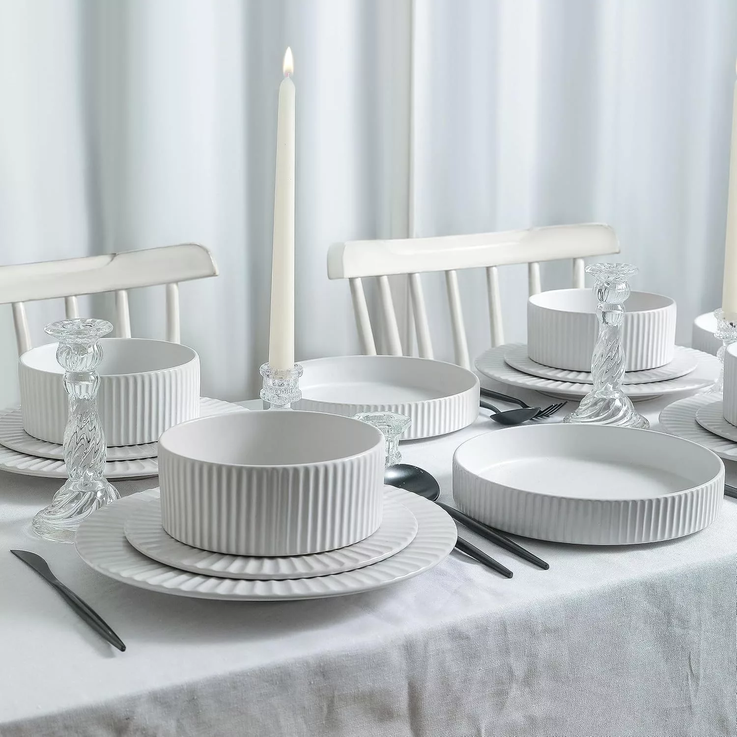 Christian Siriano Lusso 16-Piece Dinnerware Set Stoneware, White
