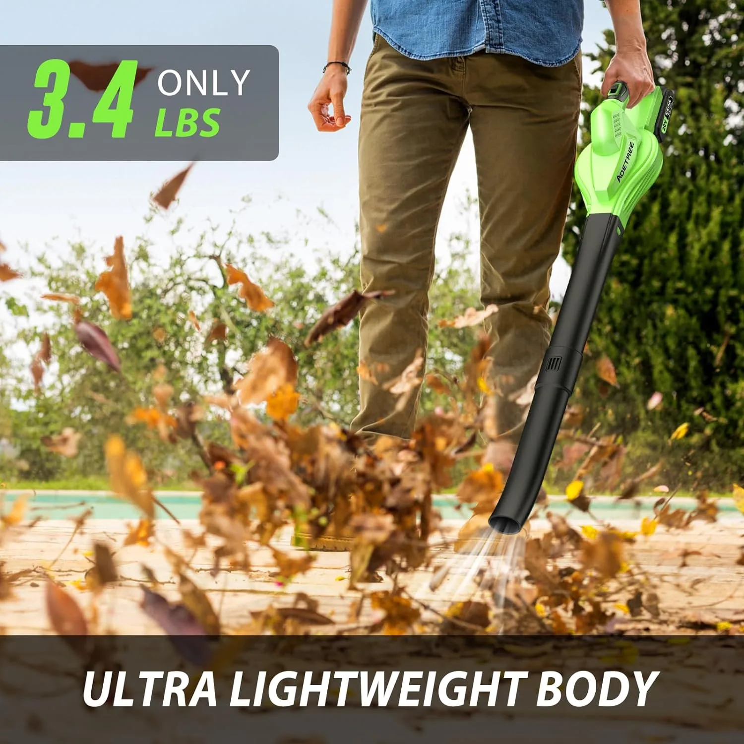 - 3.4LBS ULTRA-LIGHT COMPACT BODY, EASY FOR WOMEN TO HOLD – Can be operated with one hand. One button can control the leaf blower switch, no need to press the button all the time, giving you a comfortable experience.