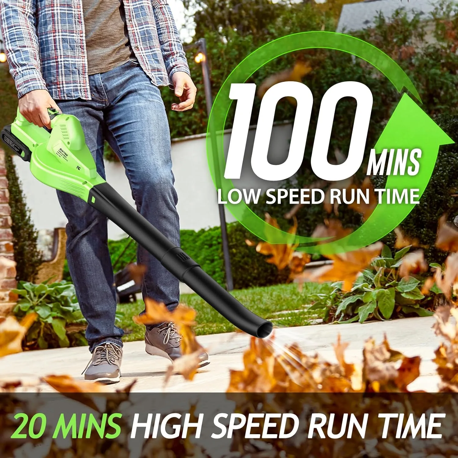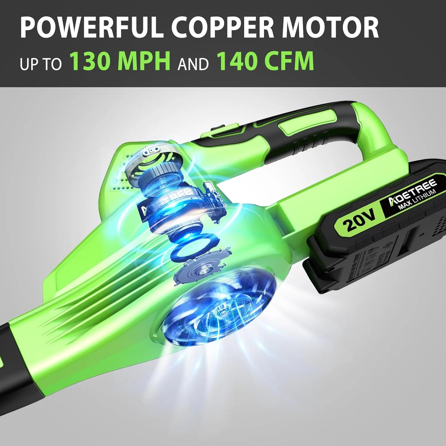 - POWERFUL COPPER MOTOR TURBINE ENGINE – The cordless leaf blower use top turbofan technology to improve air output, the performance can be up to 130mph and 140cfm, suitable for indoor cleaning and outdoor leaf blowing.