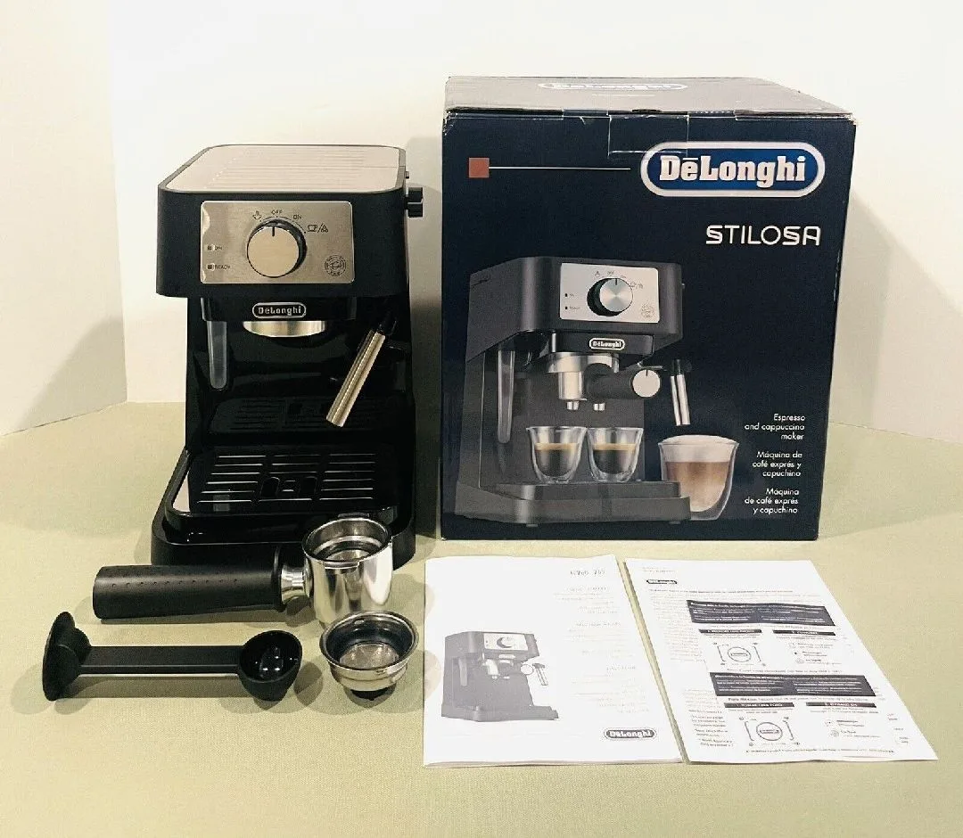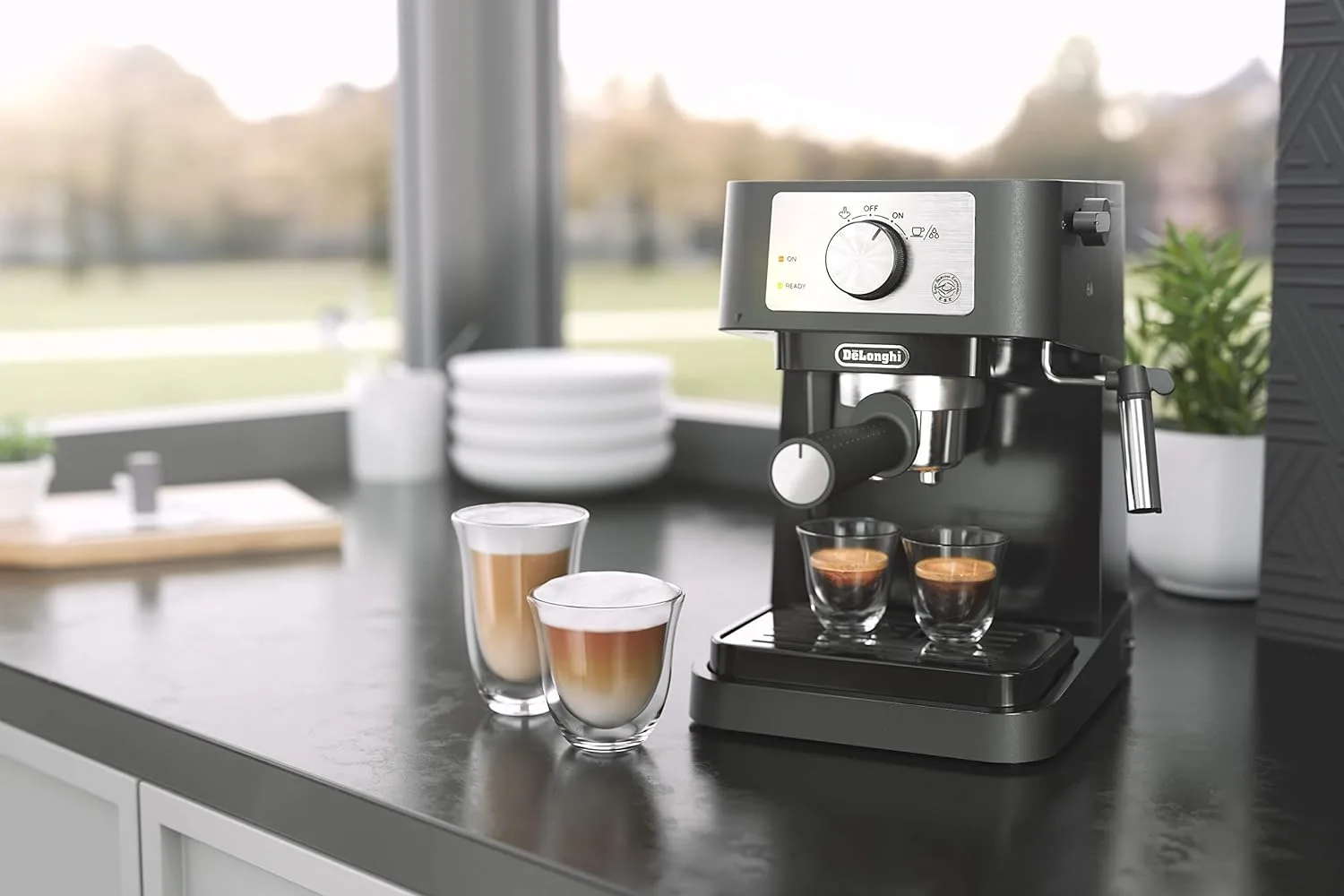 The Stilosa Espresso Machine by De’Longhi is an elegantly designed espresso machine that elevates your espresso experience at home.