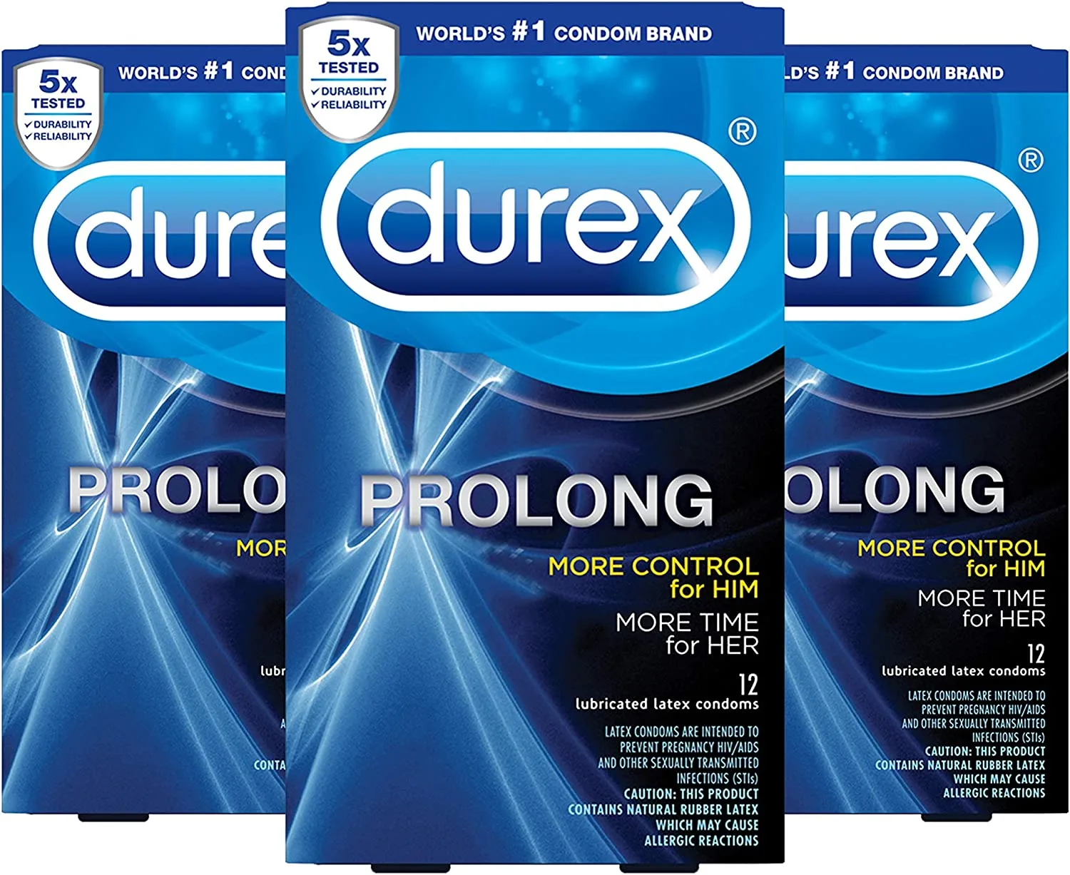 - DUREX PROLONG: Delay condoms for men are made with a desensitizing lubricant to help him last longer and are textured and designed to help speed her up