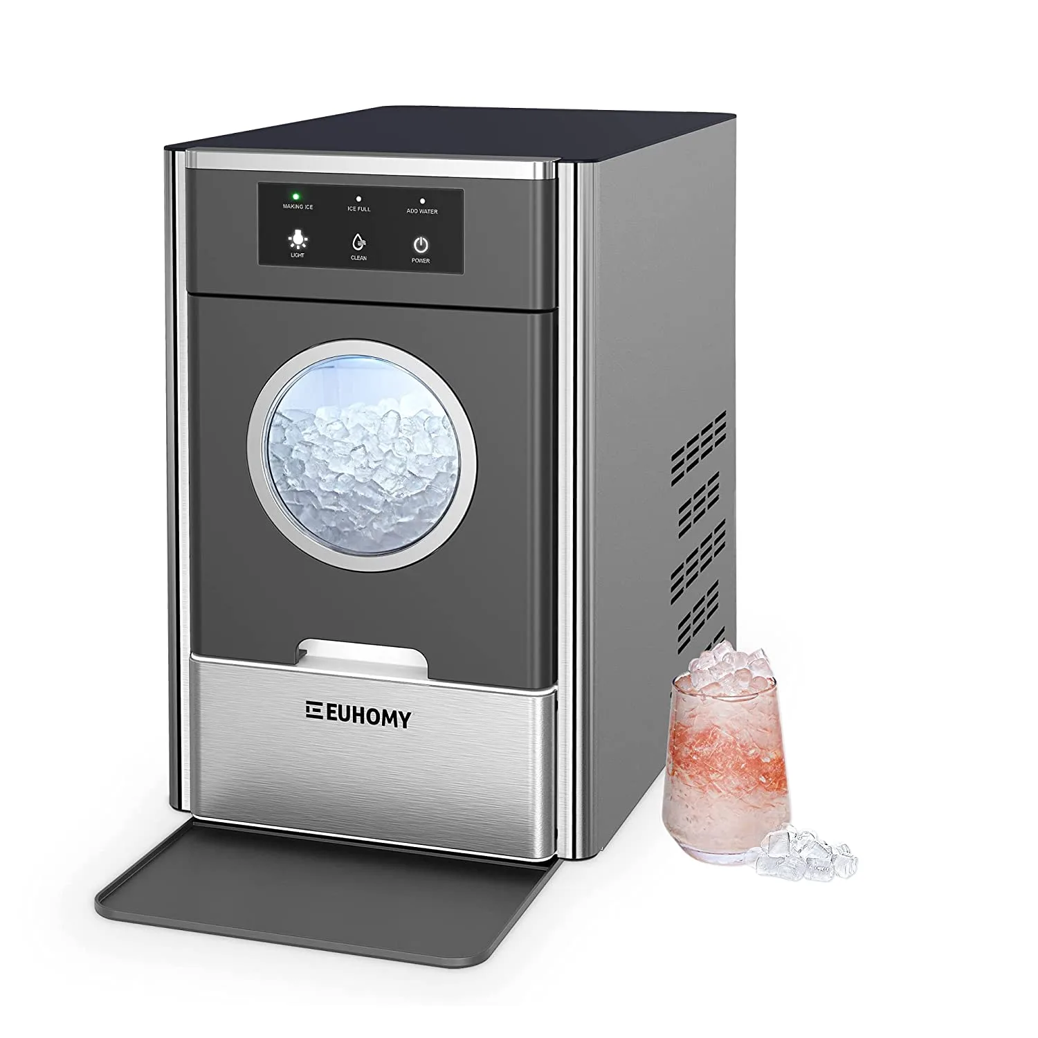 - 33LBS/24H BIGGER CAPACITY & BEST CHEWABLE ICE: Enjoy the first batch of fresh ice in 12mins at 77℉. With a 2.6Qt water tank and powerful compressor, our nugget ice maker quickly makes a max of 33lbs ice per day and holds up to 3.5lbs at a time. Compared with those hard cubes, the crunchy soft nugget ice not only cools drinks quickly but also retains the real taste of fresh drinks even providing chewable joy, which is perfect for cocktails, whisky, and other beverages.