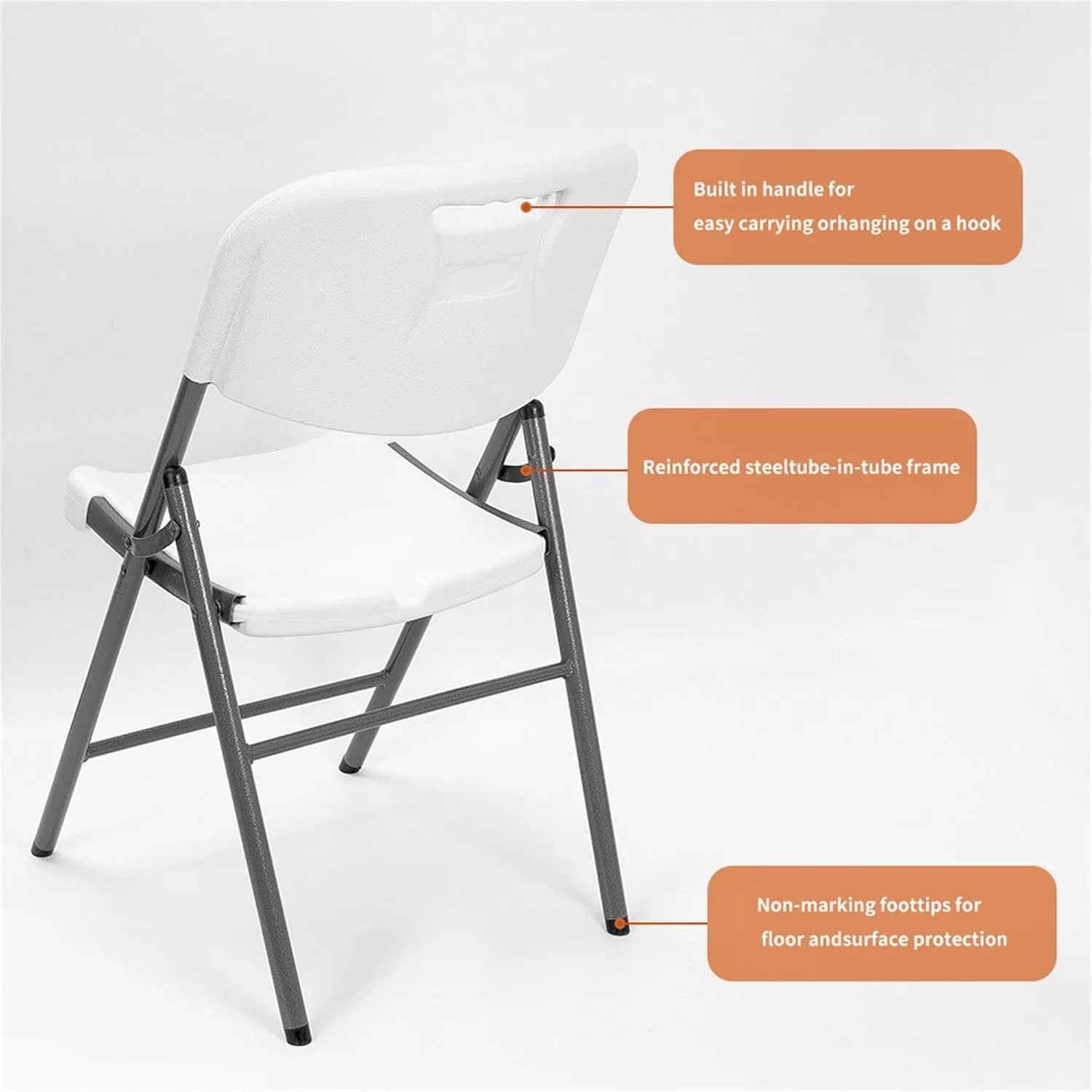 • Reliable Materials: The outdoor folding chair is made of a sturdy metal frame and comfortable plastic back and seat, with good durability and a stable structure. Backrest and seat surfaces are grainy and non-smooth to prevent sliding
