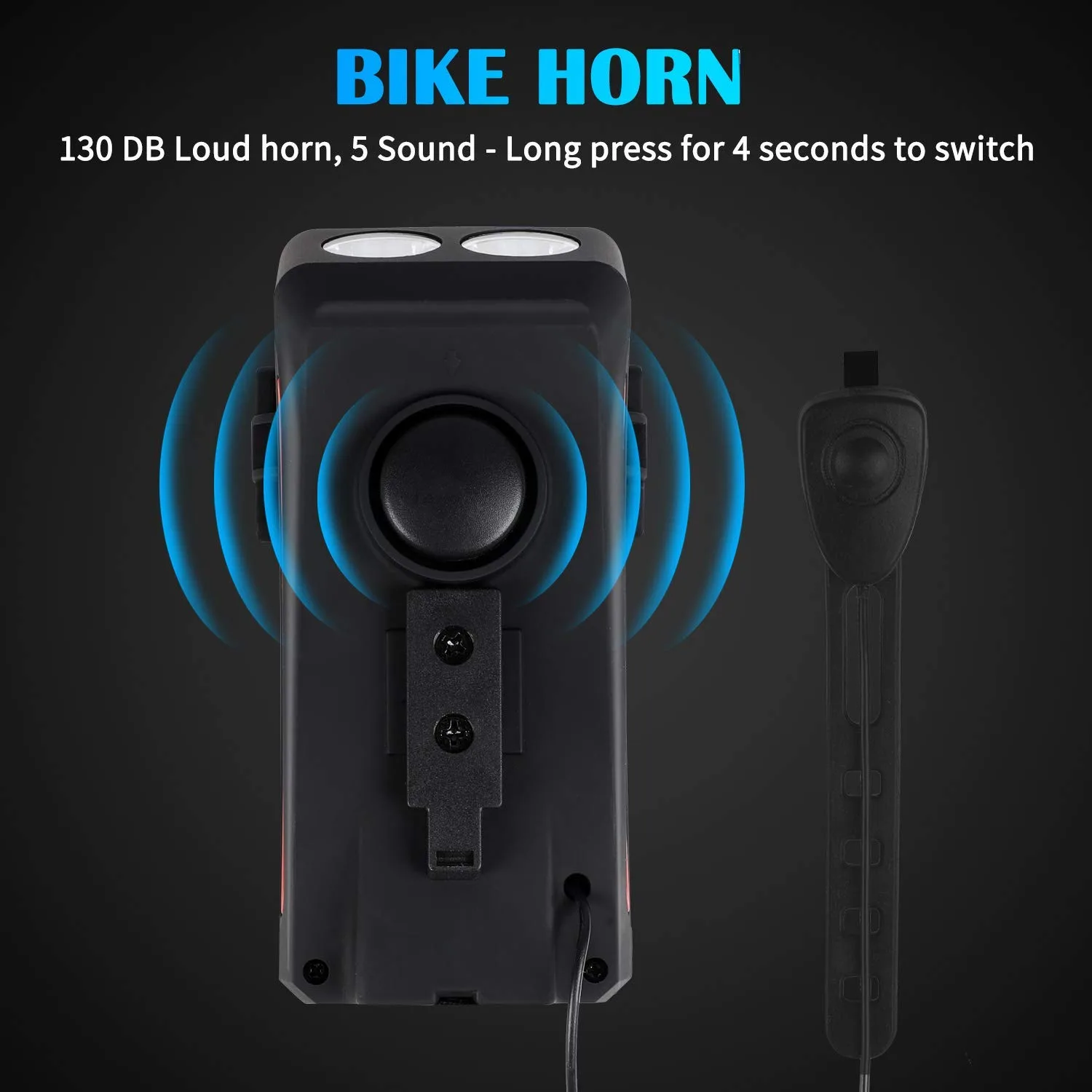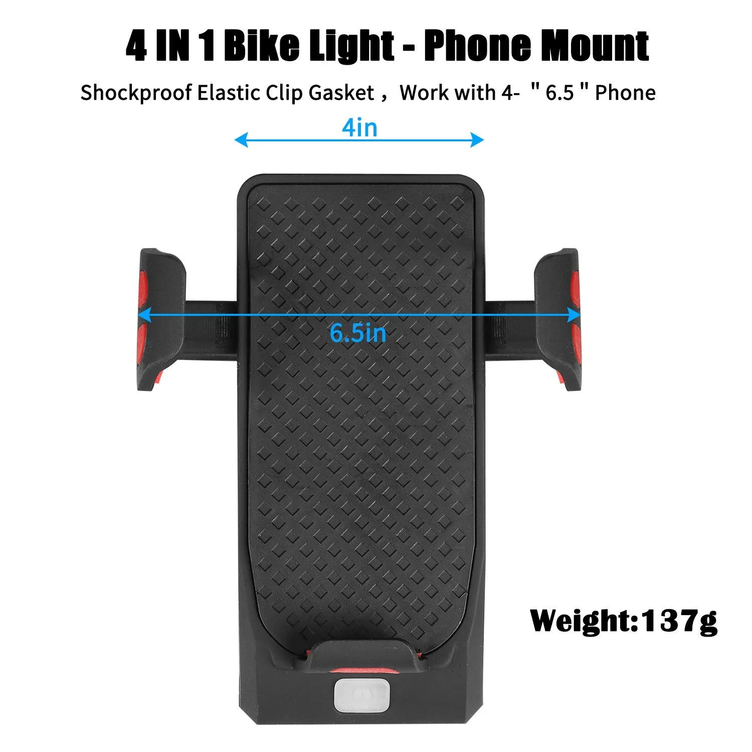 Lista 4-in-1 Bicycle Phone holder with with a loud horn, bright double headlights and a rechargeable power bank.