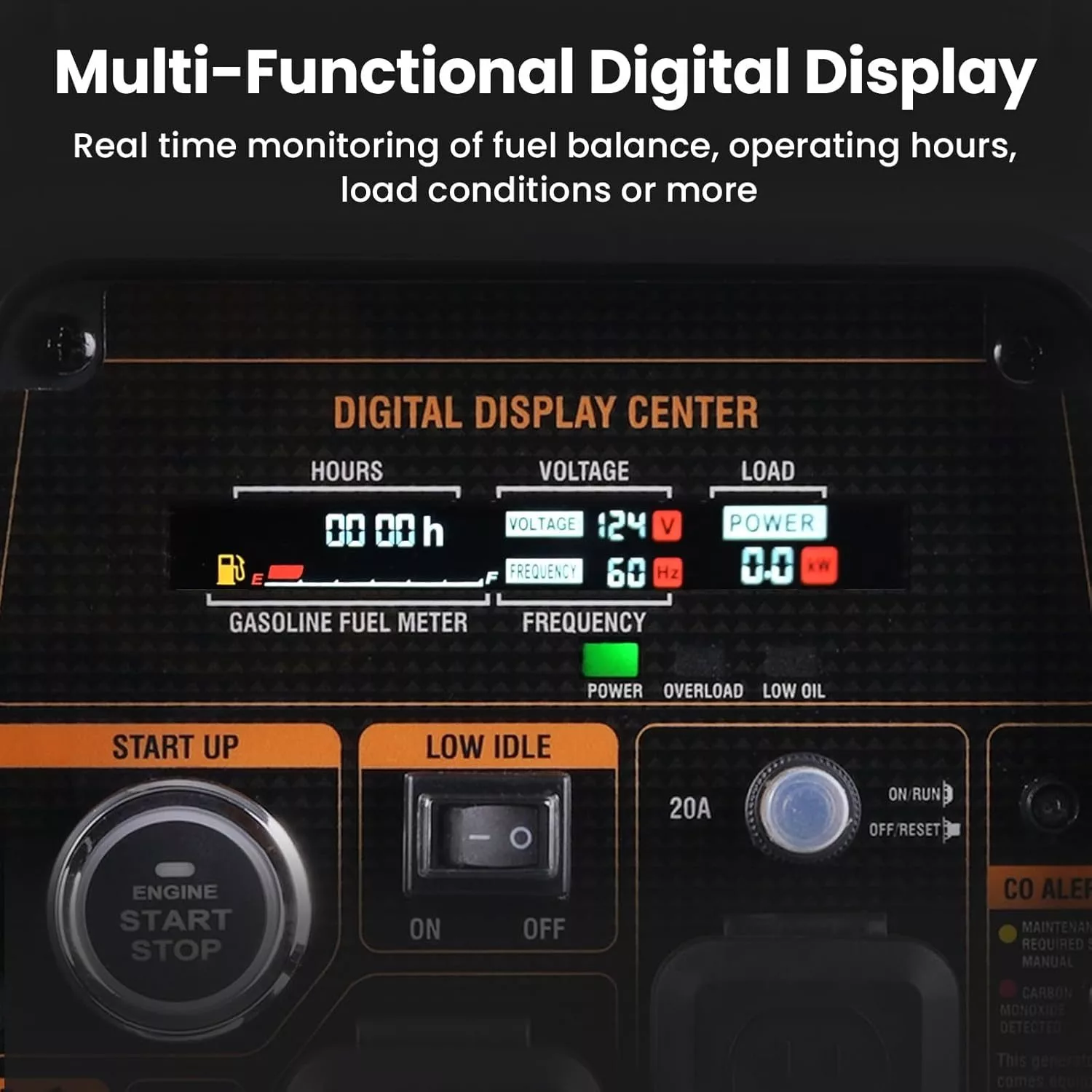 - Clear Digital Display: The panel is equipped with a digital display screen to monitor the data and feedback information in real time. It helps you clearly understand the fuel condition, usage, power generation status and generator condition.