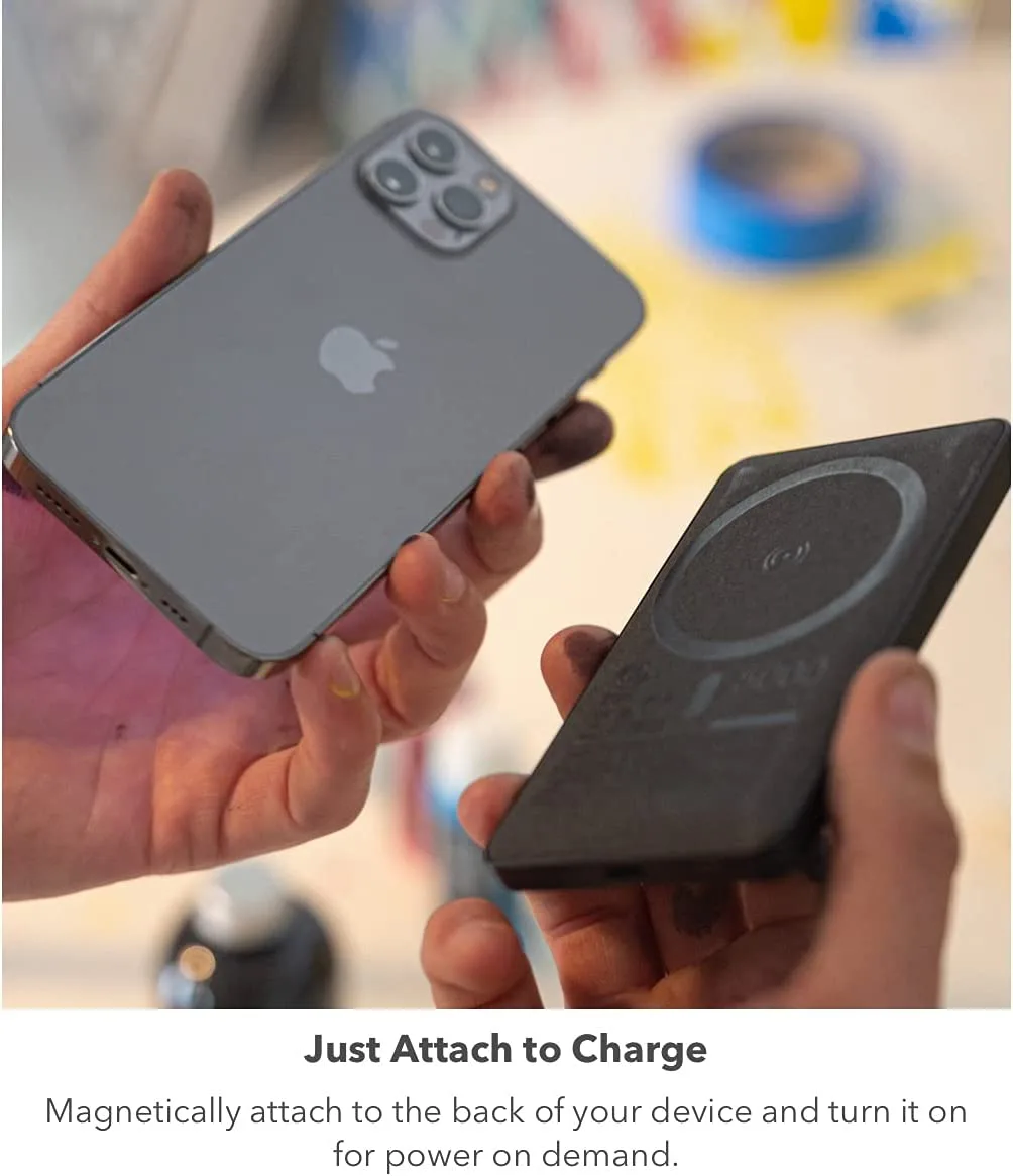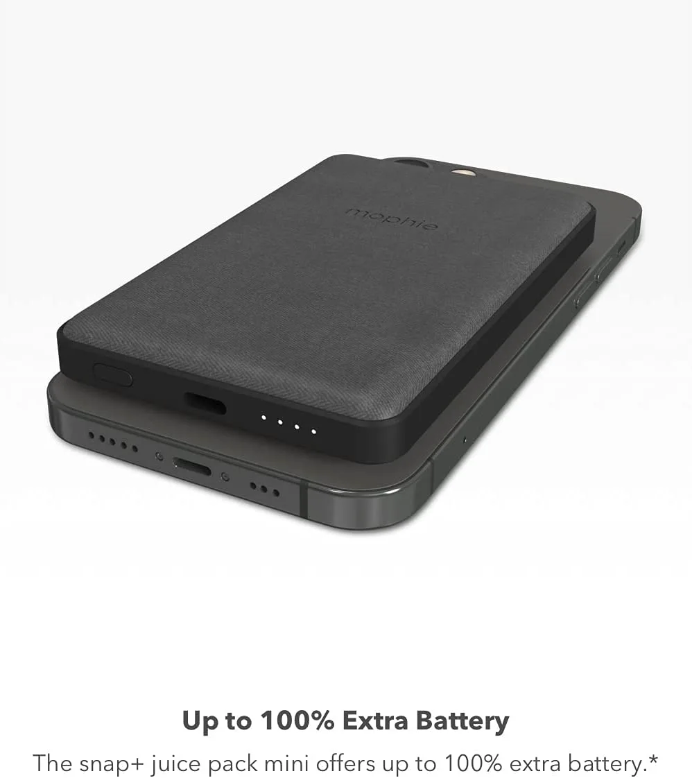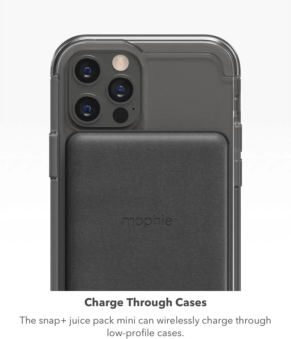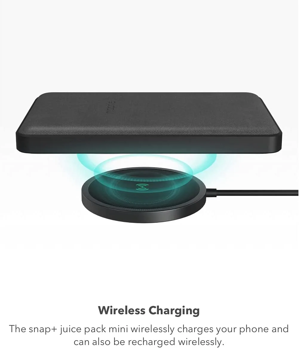 - EFFICIENT MAGNETIC WIRELESS CHARGER – In a flash, give your phone a power boost with the mophie Snap plus Juice Pack Mini – a portable magnetic wireless charger featuring a 5,000 mAh powerful internal battery that offers enough power for a full charge
