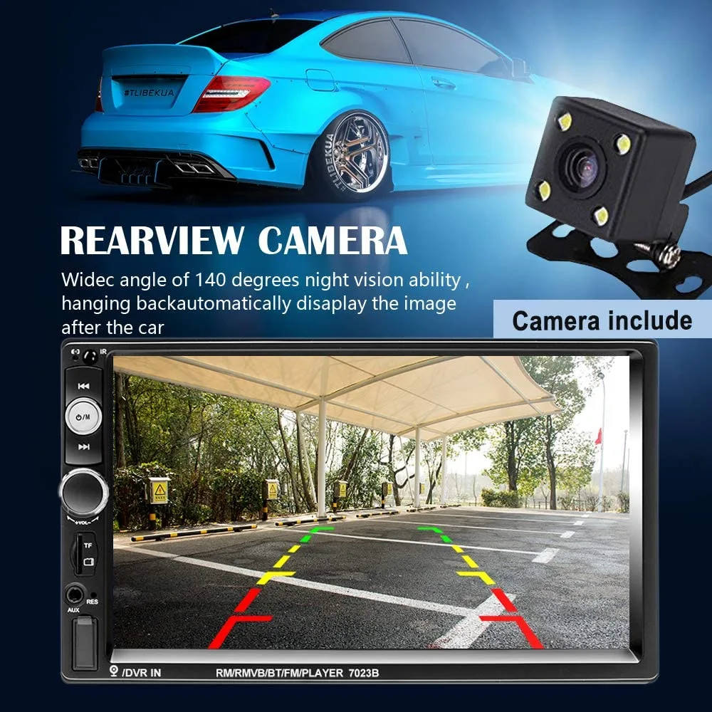 - Rear View Camera Input: Auto radio will display the reversing visual automatically when reversing. Free camera is included: 170°wide view lens 4 LED night vision IP68 waterproof. Come with a steering wheel adaptor, quickly switch functions, more safer and convenient.