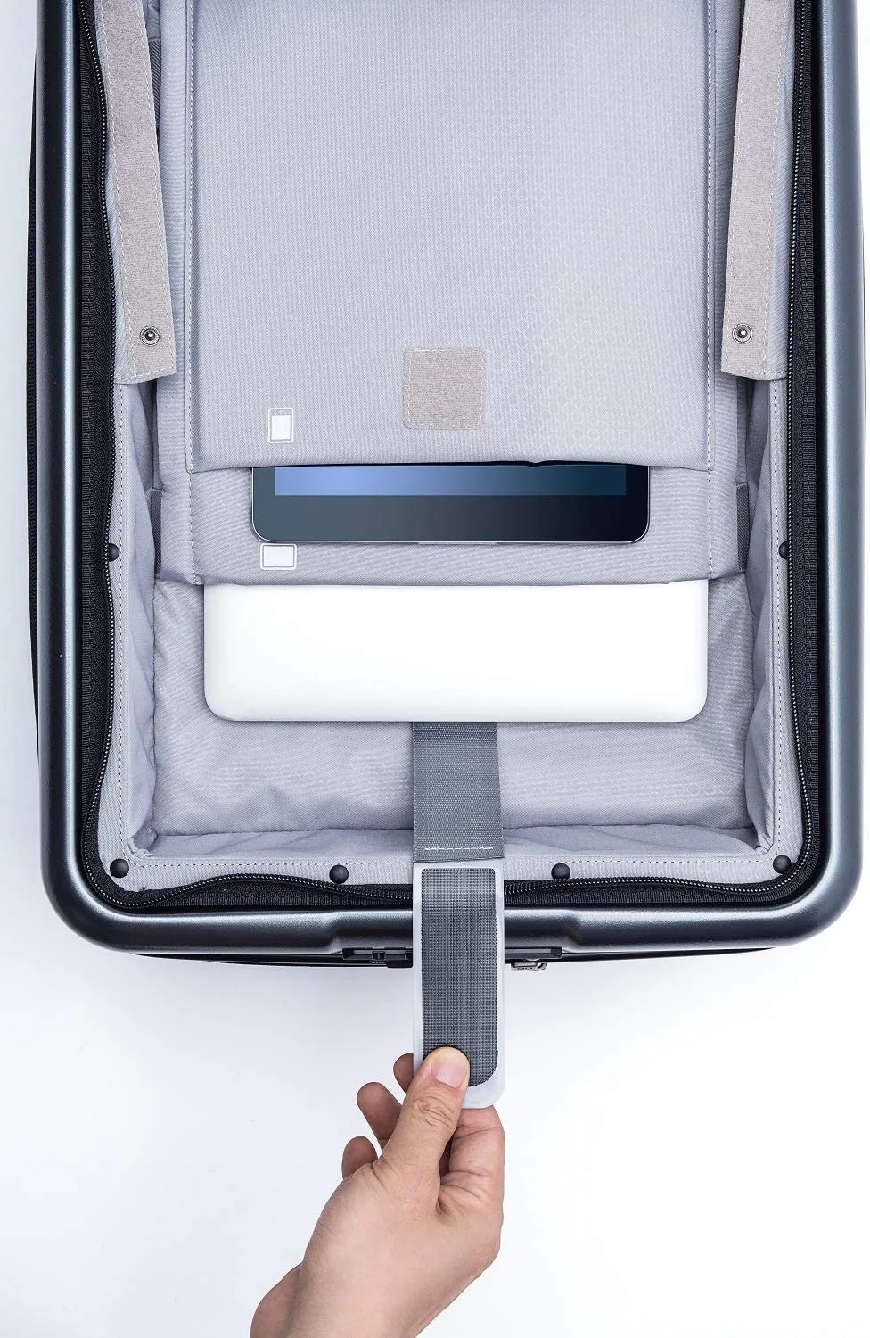 - SPECIALLY DESIGNED FRONT OPEN COVER: This luggage has a specially designed front open cover for carrying laptop, IPad, charging cable, power bank and other commen items during your trip. You can easily access them with out opening the whole suitcase.