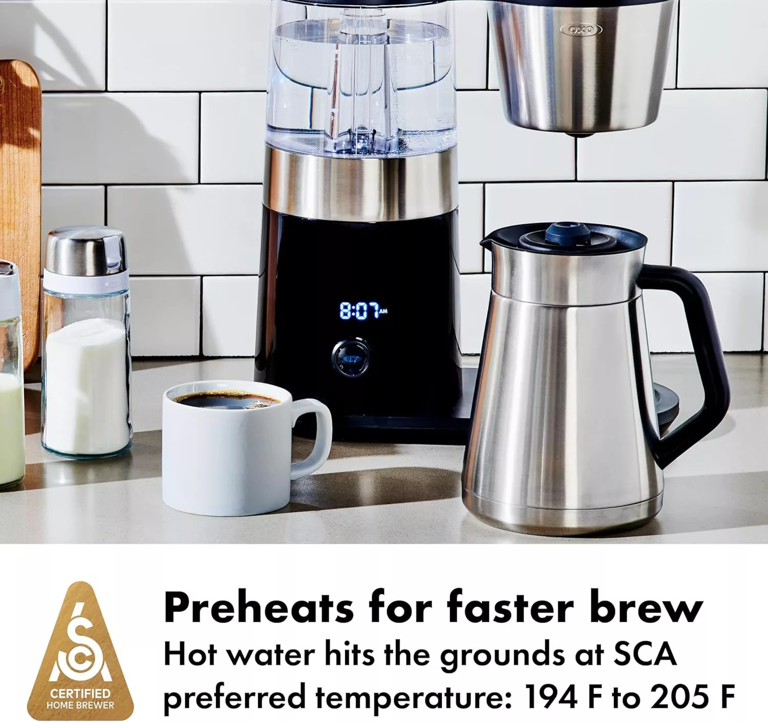 - Temperature-controlled brewing keeps the water between 197.6–204.8°F /92-96°C – the ideal range for drip coffee
