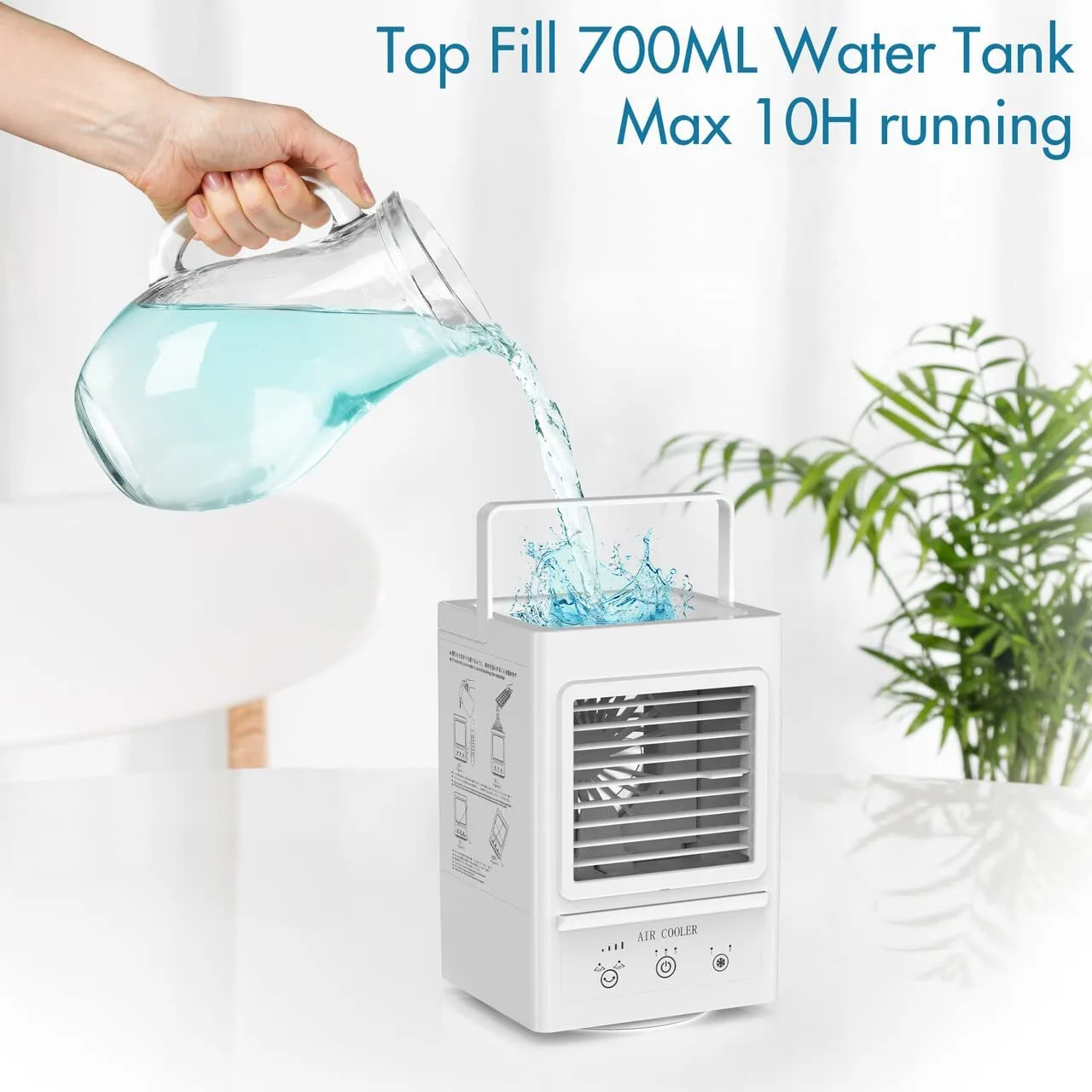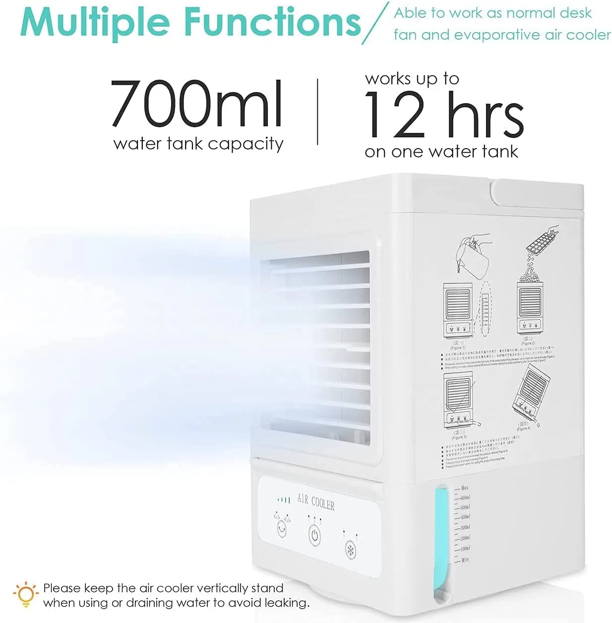 - 700ml Water Tank: Personal air conditioner with a large water tank, easy to add water from the top and check the capacity from the side, lasts up to 12 hours with a full fill