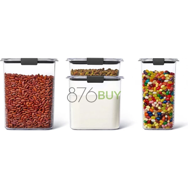 - Set of 4 pantry airtight food storage containers includes one 16-cup container, one 12-cup container, one 6.6-cup container, and one 3.2-cup container, plus lids, for a total of 8 pieces