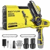 - Tool Free Installation & Tensioning: The battery-powered chainsaw is almost ready to use right out of the box. The chain and saw can be easily installed and replaced without any tools. You can refer to the English manual for instructions on how to replace the chain of this cordless chainsaw. For safety, please pull out the battery pack of the mini chain saw cordless when not in use