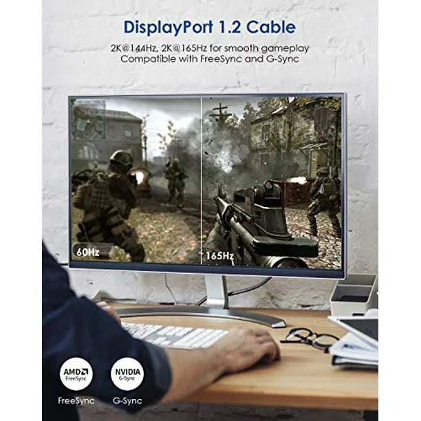 Silkland 165Hz refresh rate DisplayPort Cable for smooth gameplaySupports 4K@60Hz, 2K@165Hz, 2K@144Hz, 2K@120Hz, 3440×1440@100HzBackwards Compatible with 1080P@165Hz, 1080P@144Hz or Lower refresh rateCompatible for your gaming monitors with FreeSync and G-Sync technologySupports DP, DP++ and DisplayPort++. Pin 20 is not activeSupports 3D, 8-bit and 10-bit deep color and sharp imagesHBR2 rated – Backwards Compatible to DisplayPort 1.2/1.1/1.1a/1.0Compatible Devices Desktops and laptops with an available DisplayPort output, Graphics Card Gtx 960/970/980/1050/1060/1070/1080 and more144Hz & 165Hz Gaming Monitor Lenovo, Dell, HP, ASUS; HDTV; DisplayInnovative Design28 AWG Tinned Copper – Avoid Flickering/Black Screen, Stable & reliable transmissionIntegrated Molding – Effectively prevent cracking, hard to failAluminium Alloy Shell – Have better heat dissipation than the PVC shell, ensuring ultimate durabilityQuality Braided Nylon – Anti-aging, anti-twisting, moisture protection and abrasive resistance24K Gold Plated Connectors – Provides reliable connectivity and preserves signal purityResists corrosion and withstands 5,000+ 90 degree flexions and 10,000+ connections and disconnections