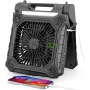 - Solar Power & LED Lighting: High Efficiency Solar Panel: This solar camping fan with a solar panel make it more faster energy conversion to extend the runing time. LED Light: Light up the night! This rechargeable fan come with LED camping lantern and 3 settings: low, bright and SOS red strobe light option