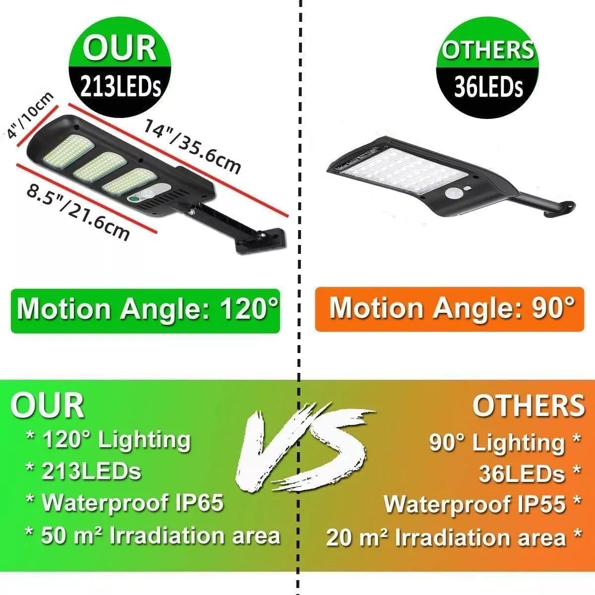 • 213 LEDs Super Bright Solar Lamp Beads: The enhanced outdoor solar sports induction each light has 213 LEDs beads, which provide excellent lighting of up to 2000 lumens, Solar sensor lights which is far brighter than other similar LED solar lights.