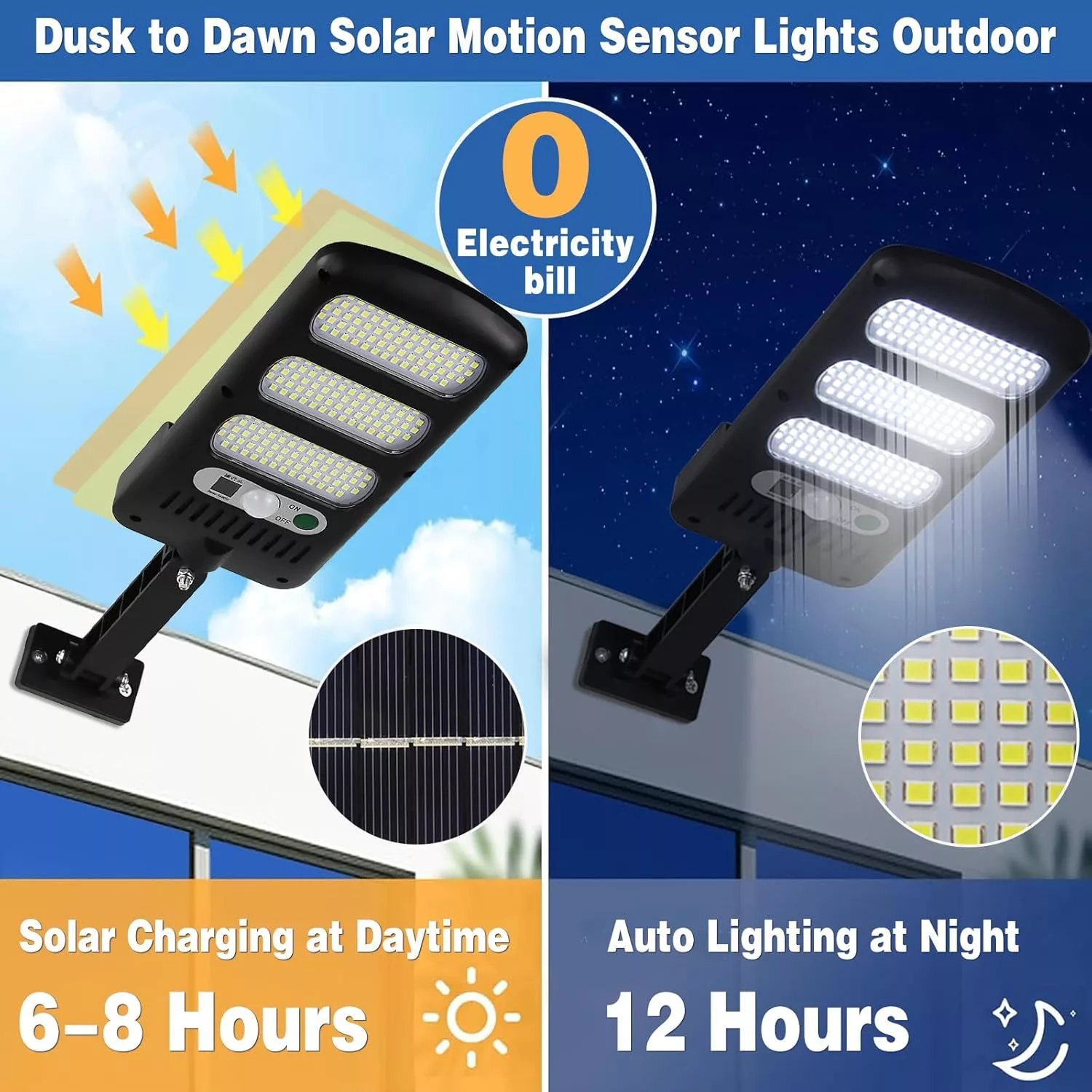 • No Electricity Worry & Wireless Installation: This Solar Sensor Lights built-in rechargeable battery which need not wire with 180° adjustable Pole. Install the solar-powered wall lights with screws provided and charge them fully under direct sunlight for 6-8hours. The ideal installation height is about 1.8 to 2.5 meters and is completed in just a few minutes.