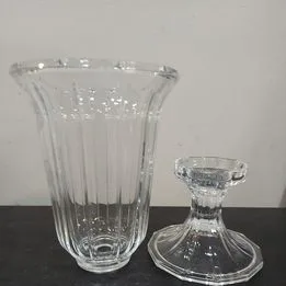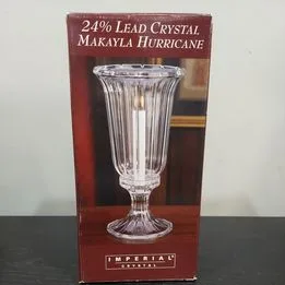 Vintage 1999 Imperial Makayla 12″ Hurricane Crystal Candle Holder Still in original (distressed) box.