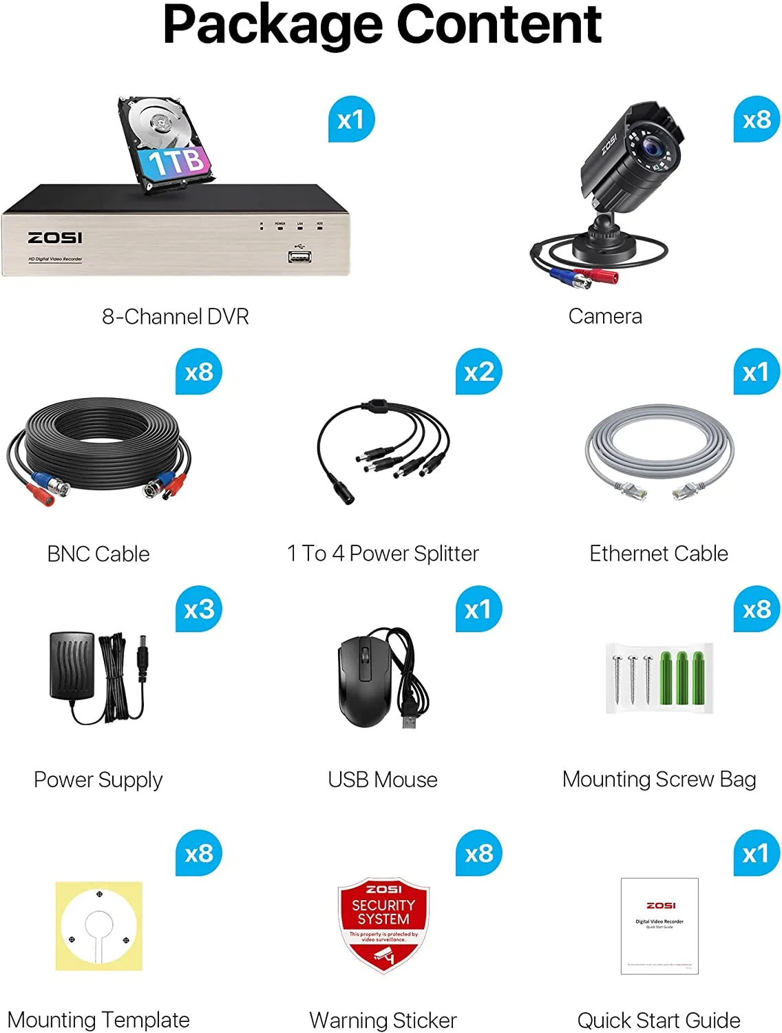 - Customize Each Camera with Different Record Modes: Our ZOSI DVR offers 4 kinds recording modes to meet your needs: Record footage continuously; Record during scheduled times; Only record when detect motion; Recycle record. You can customize each camera with different recording modes, and download the recording files for the USB backup.